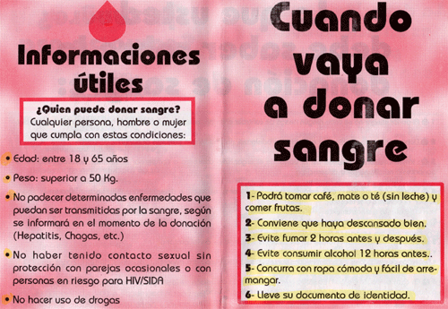 Instituto de Hemoterapia del Ministerio de Salud de la Provincia de Buenos Aires: calle 15 esq. 66 (1900) La Plata - Lunes a Viernes de 7 a 15 - Sábados de 7 a 13 horas TEL. 0221- 451-0137 / 1009 / 0490