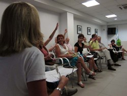 Por tal motivo adjuntan el acta a mano alzada y fotos que muestran a los vecinos y representantes de organizaciones vecinales debatiendo y dando espacio a la participación.
