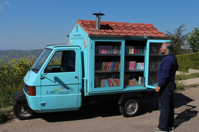 como "Bibliomotocarro". Esta biblioteca rodante es su