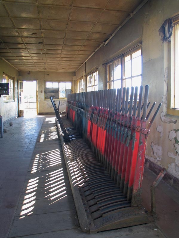 Cabina de señales. Seguirán inmóviles por falta de tren