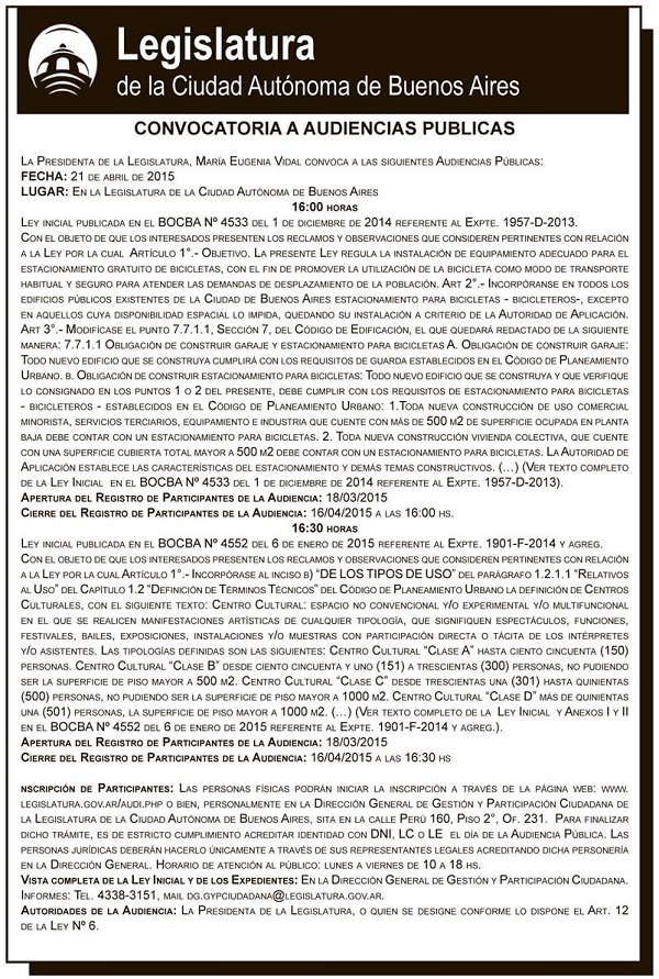 AUDIENCIAS PÚBLICAS / 21 de abril del 2015 a las 16 horas