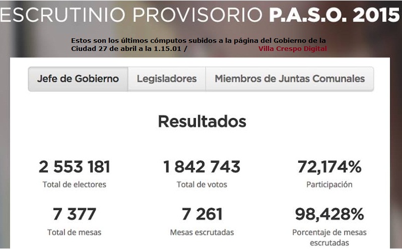 En esta entrega, la próxima será los resultados Comuna por Comuna, muestra, por un lado, que algo más del 72 por ciento fue a votar, de ese total apenas un 2 por ciento son en blanco, nulos, impugnados o recurridos. Que las encuestadoras mostraron que salvo el primer lugar y la certeza de que ganaba la fuerza oficialista, el resto de sus análisis no fueron muy acertados.