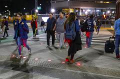 El Ministerio de Ambiente y Espacio Público de la Ciudad Autónoma de Buenos Aires instala tachas luminosas solares en las rotondas.