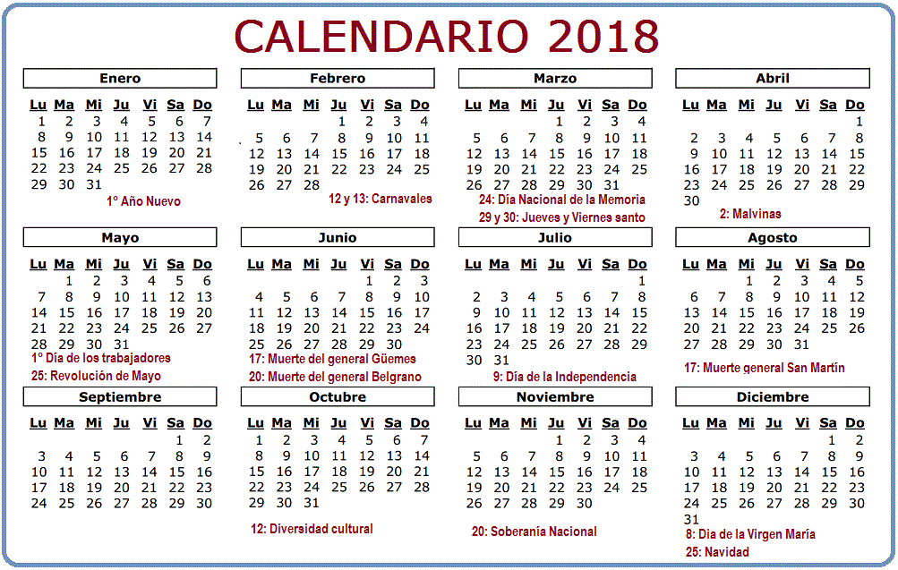 de Feriados y Fines de semanas largos Ley 27.399(abrir