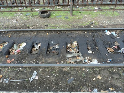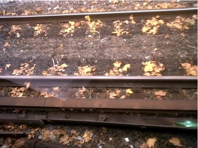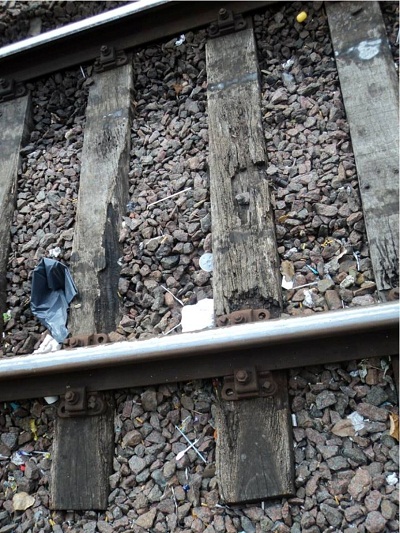 VÍAS CON LAS ECLISAS SIN BULONES QUE SUJETAN LA UNIÓN DE LOS RIELES - SISTEMA DE CAMBIO LLENO DE BARRO